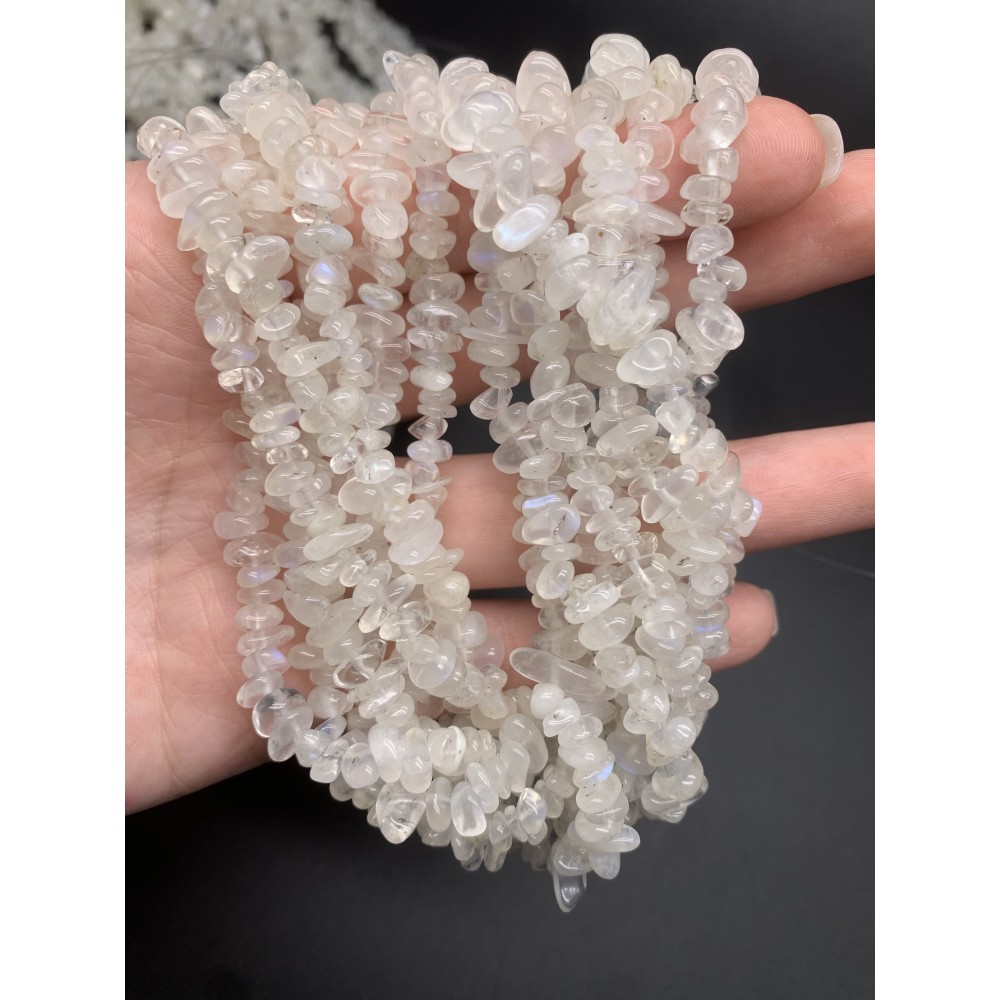 Каменные бусины, Лунный камень, крошка, фриформы, 8х4 мм, длина нити 38 см