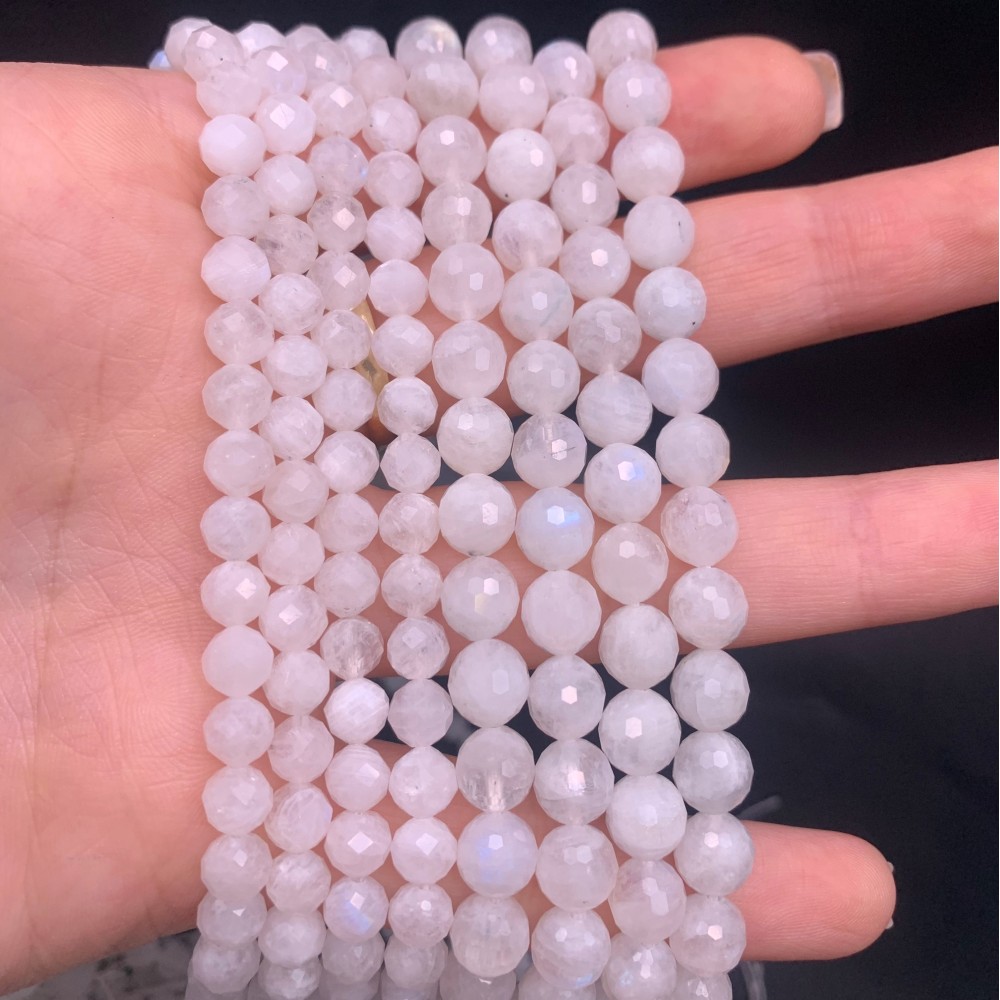 Каменные бусины, Лунный камень, люкс, шарик, ювелирная огранка, 7,5 - 8 мм, длина нити 38 см
