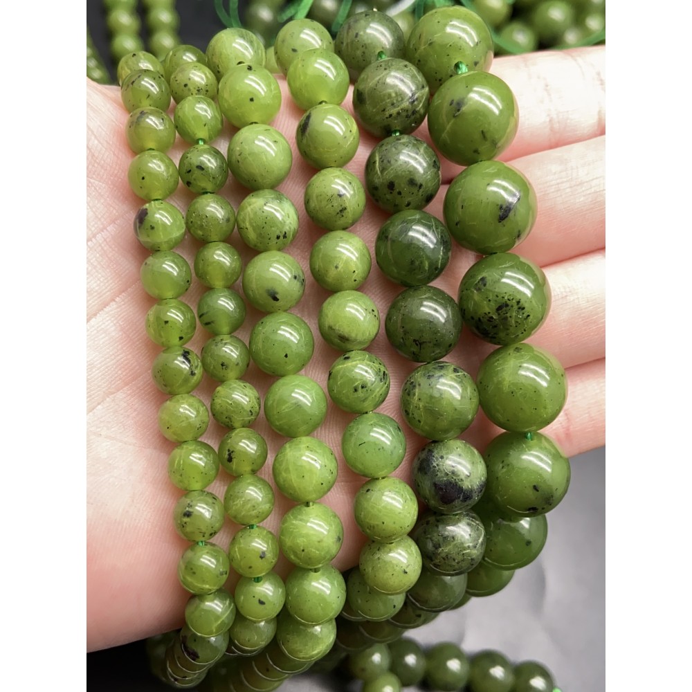 Каменные бусины, Нефрит, канадский, ЛЮКС, 12 мм, шарик гладкий, длина нити 19 см