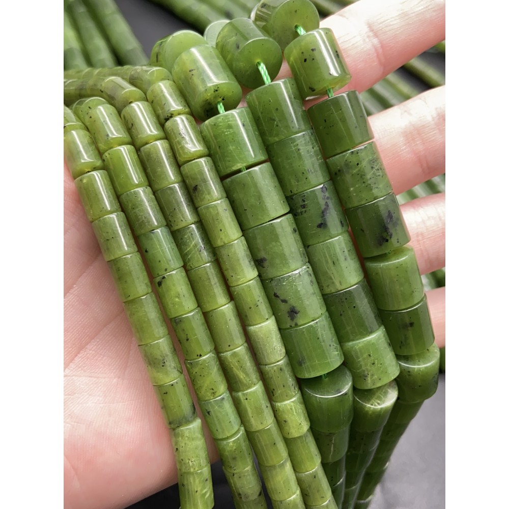 • Каменные бусины, Нефрит, канадский, столбик, 10х10 мм, длина нити 38 см