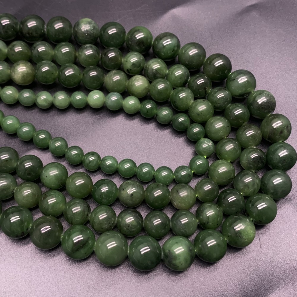 Каменные бусины, Нефрит, Россия, шарик гладкий, 6 мм, длина нити 38 см