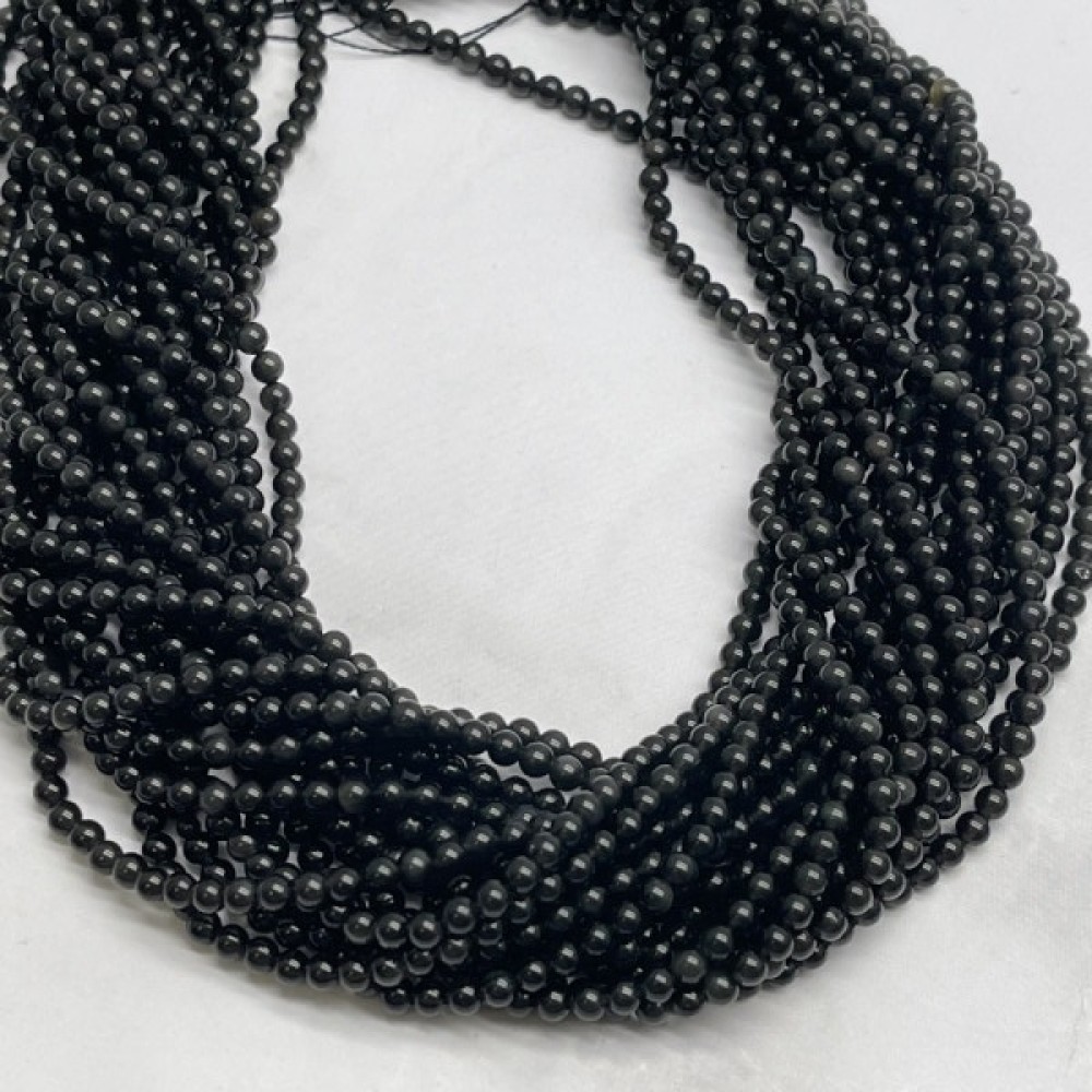 Каменные бусины, Обсидиан серебристый, шарик гладкий, 4 мм, длина нити 38 см