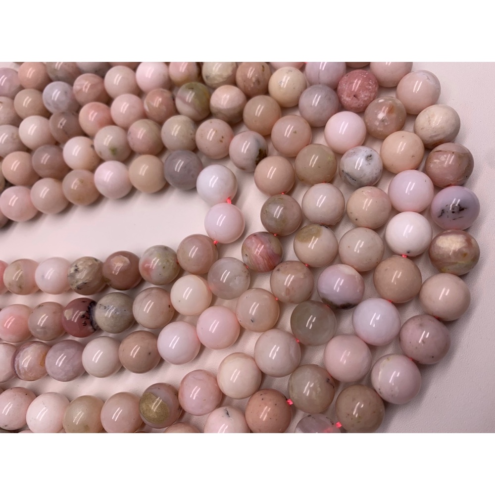• Каменные бусины, Опал розовый, шарик гладкий, 10 мм, длина нити 19 см