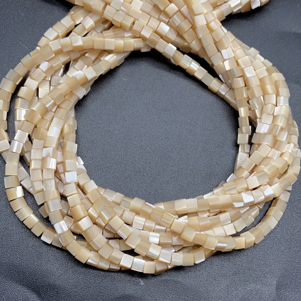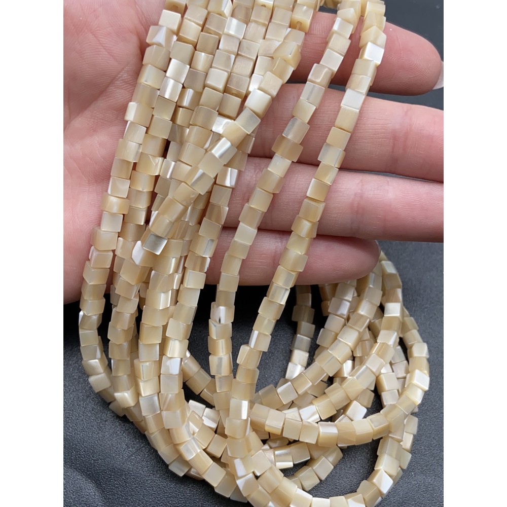 • Каменные бусины, Перламутр бежевый, тонированный, кубик гладкий, 3,5-4 мм, длина нити 38 см