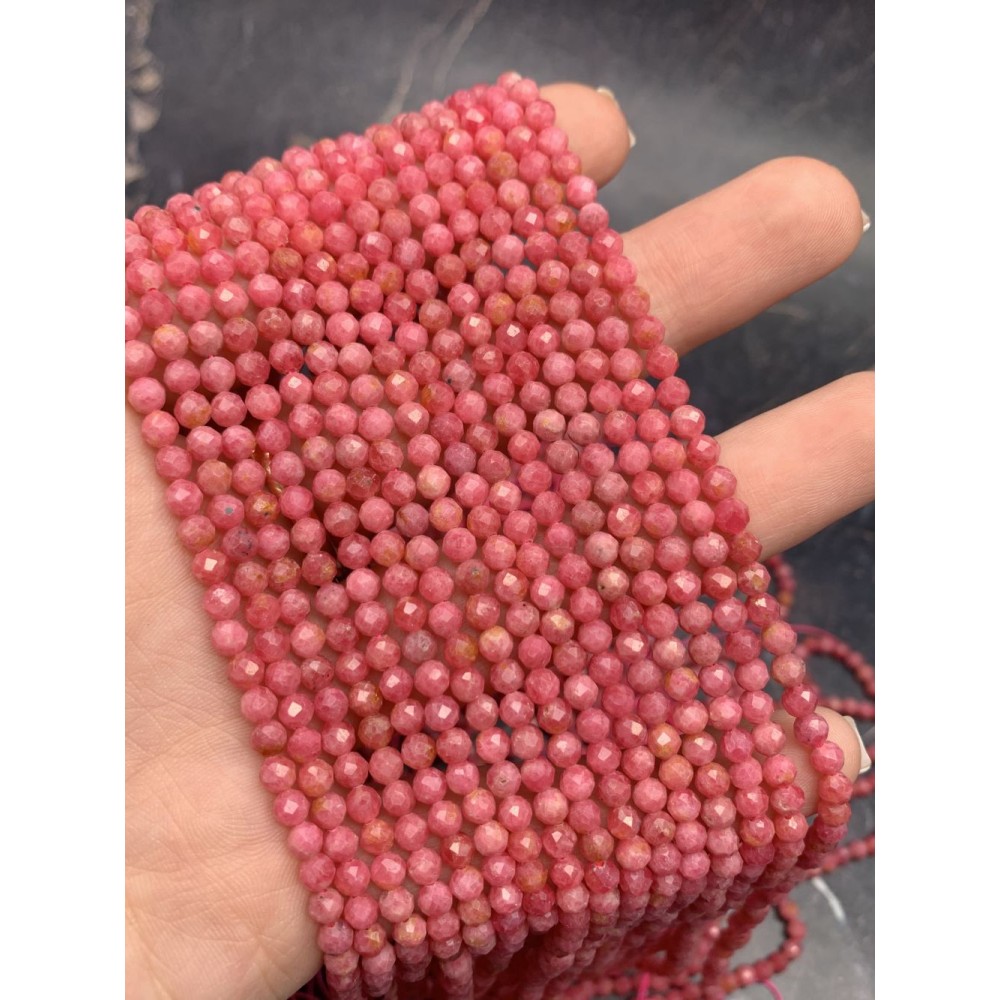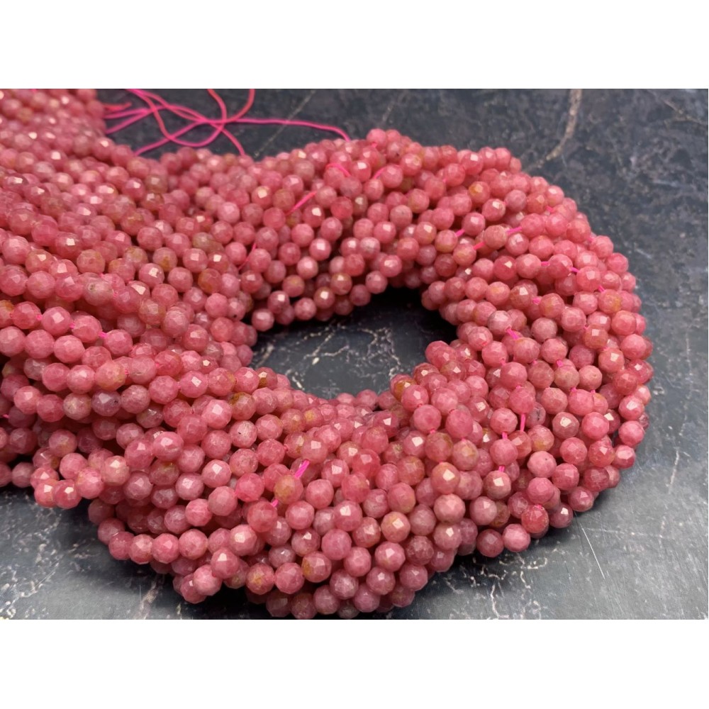 • Каменные бусины, Родохрозит (Бразилия), люкс, шарик огранка, 4 мм, длина нити 38 см