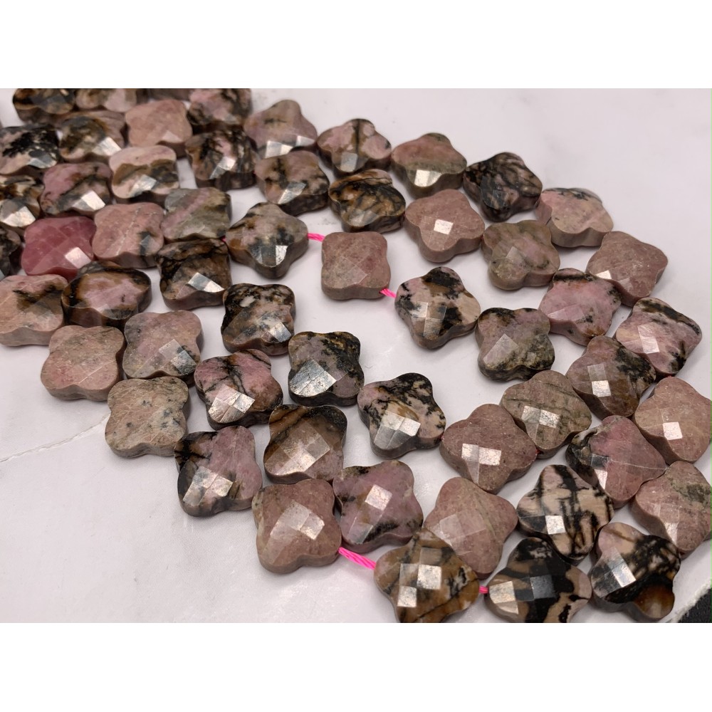 Каменные бусины, Родонит, дендритовый, клевер, в огранке, 13х6 мм, длина нити 19 см, 15 бусин