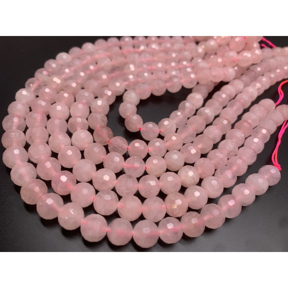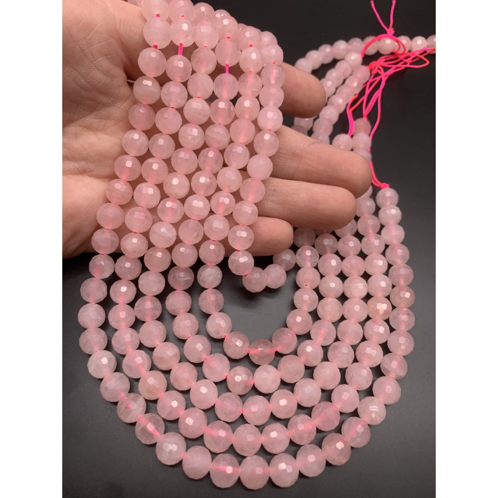 • Каменные бусины, Розовый Кварц, ювелирная огранка, шарик, 8 мм, длина нити 38 см