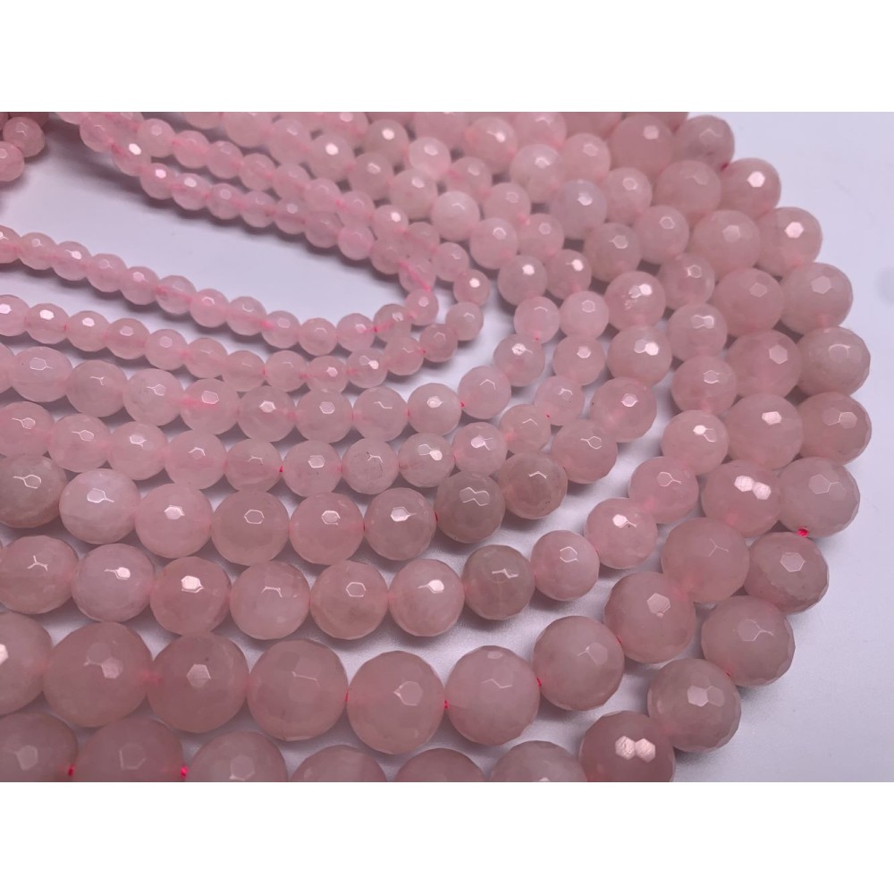 Нет в наличии Код товара: 16844 Каменные бусины, Розовый Кварц, ювелирная огранка, шарик, 8 мм, длина нити 38 см