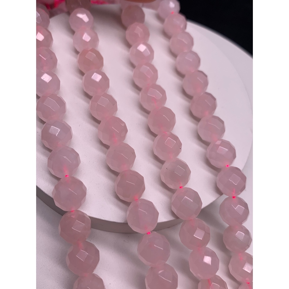• Каменные бусины, Розовый кварц, шарик огранка, 10 мм, длина нити 38 см