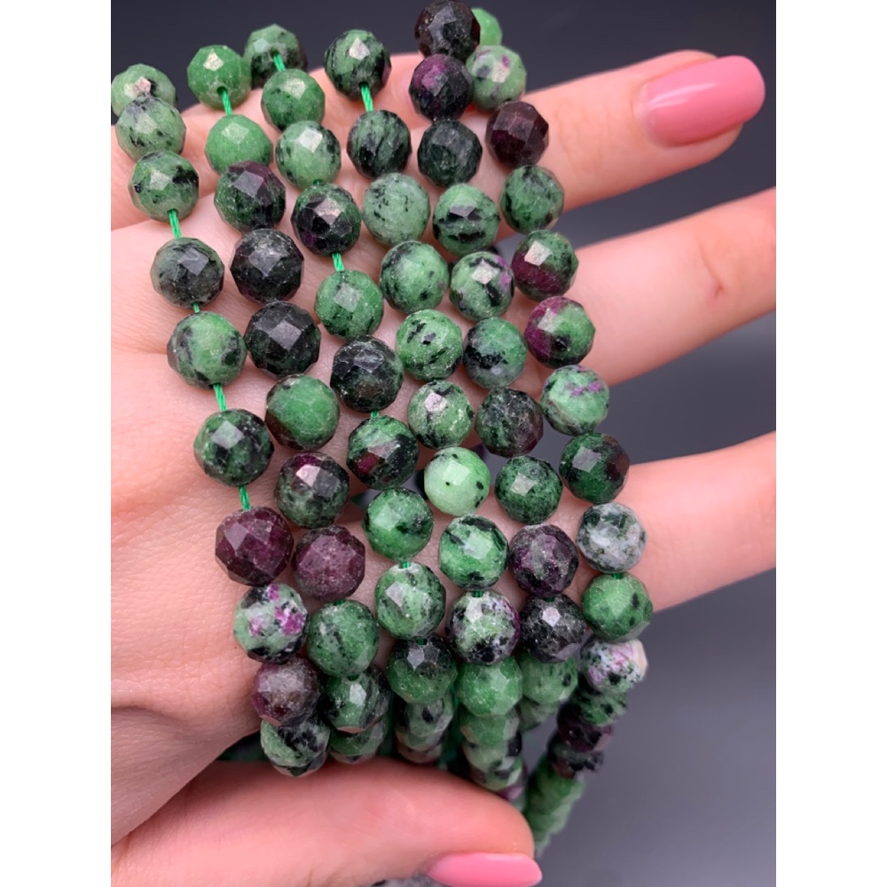 • Каменные бусины, Рубицоизит, шарик огранка, 8 мм, длина нити 38 см