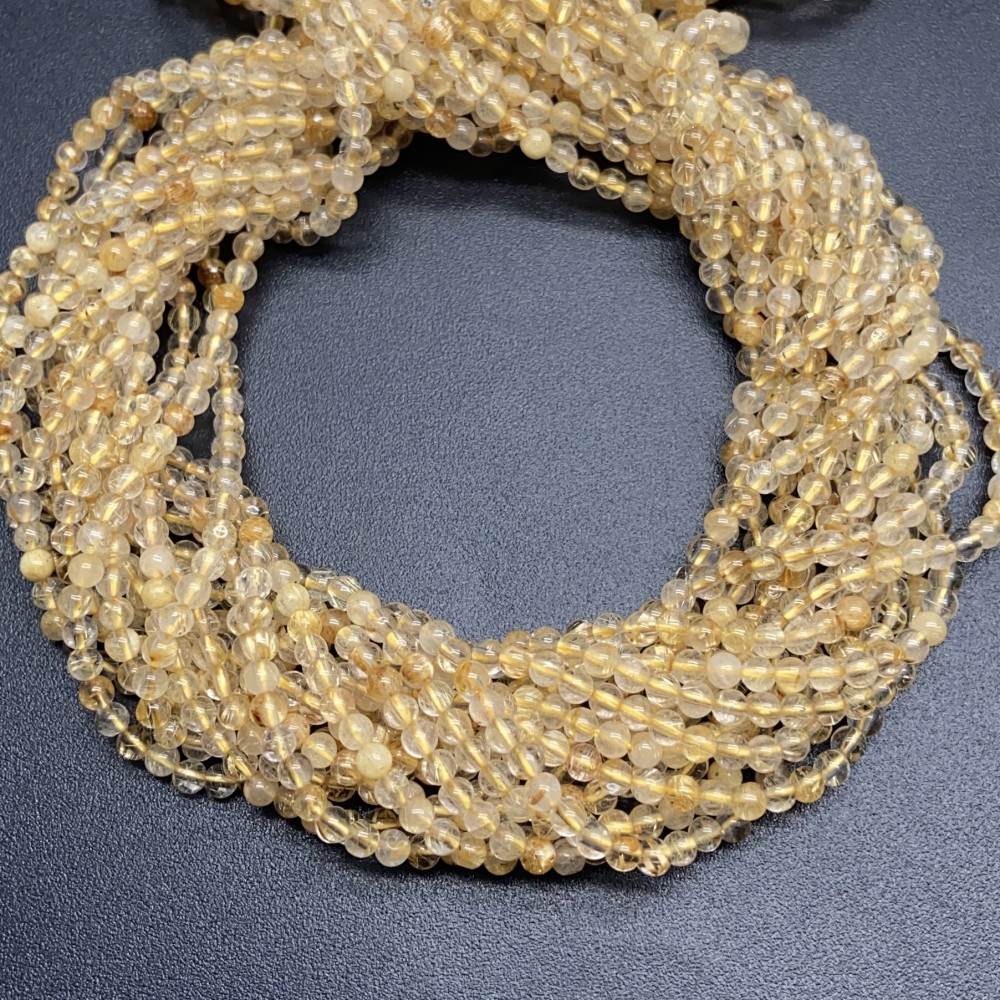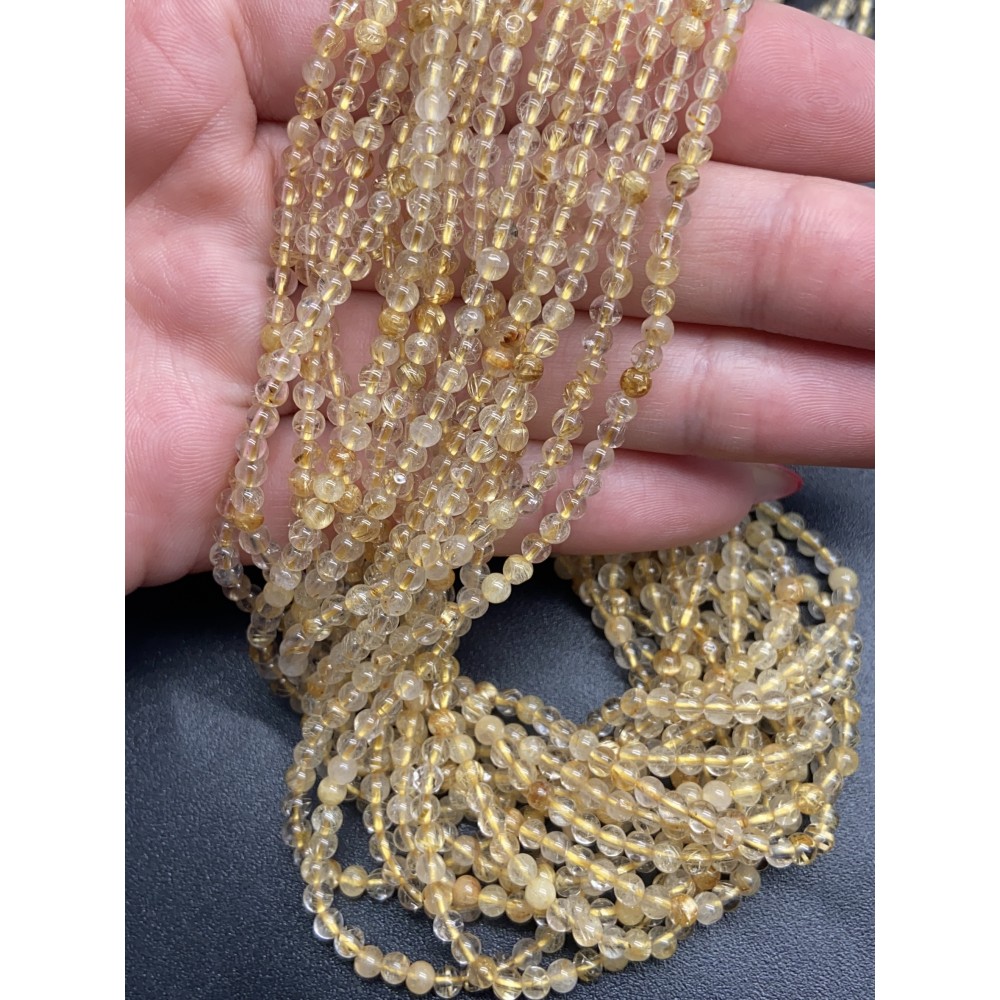 • Каменные бусины, Рутиловый Кварц, Волосы Венеры, шарик гладкий, 3 мм, длина нити 38 см