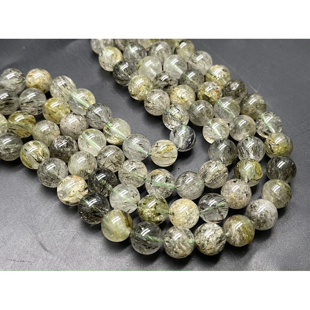 Каменные бусины, Рутиловый Кварц, Зелёный, шарик, гладкий, 10 мм, длина нити 38 см