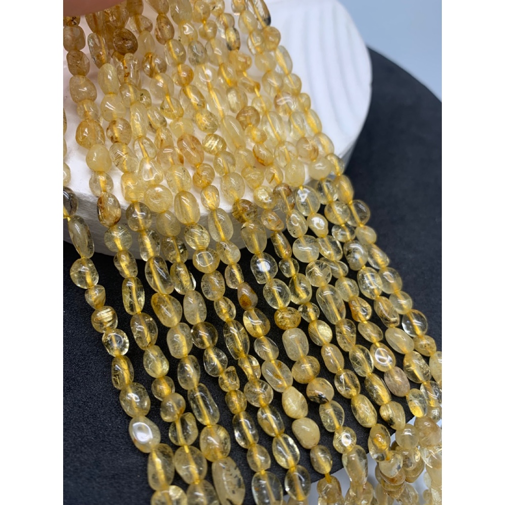 Каменные бусины, Рутиловый Кварц, Золотой, (Волосатик), фриформы, 6х4 мм, длина нити 38 см