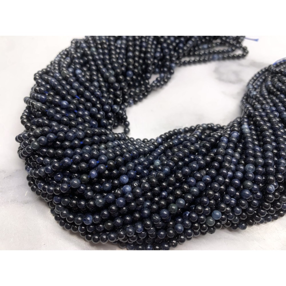Каменные бусины, Сапфир, люкс, шарик гладкий, 3 мм, длина нити 38 см