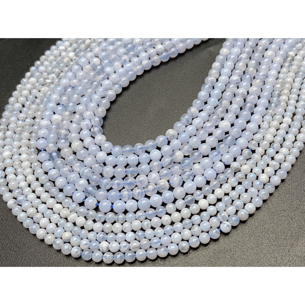 Каменные бусины, Сапфирин, Голубой Агат, шарик гладкий, 3 мм, длина нити 38 см