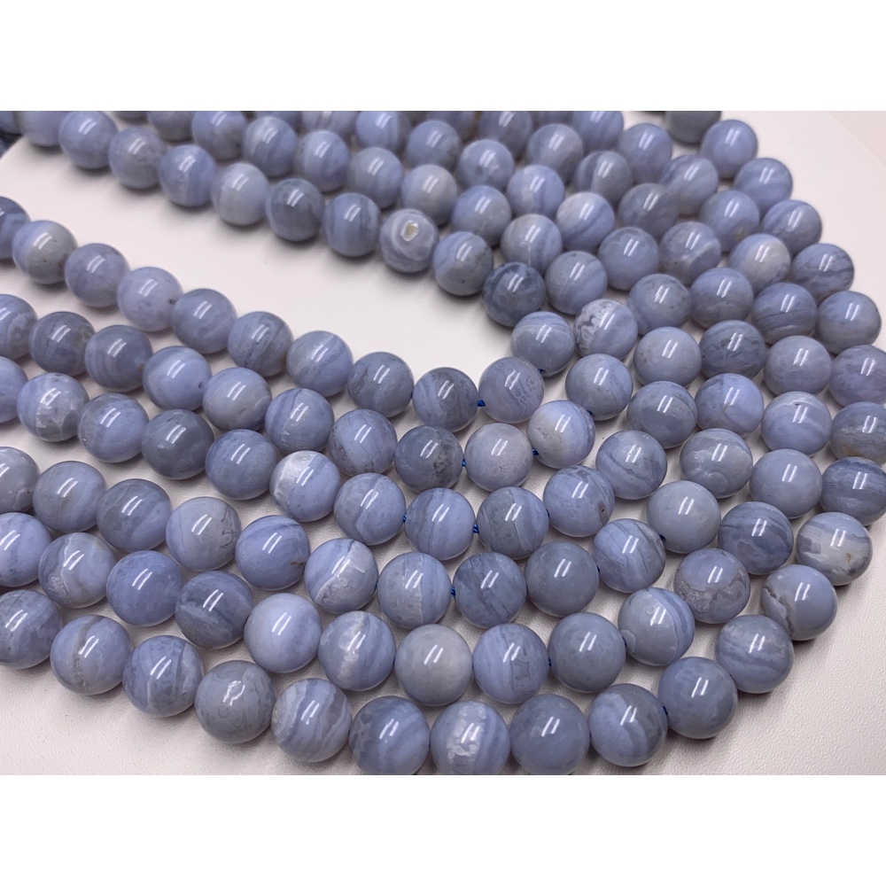 Каменные бусины, Сапфирин, Голубой Агат, шарик гладкий, 8 мм, длина нити 38 см