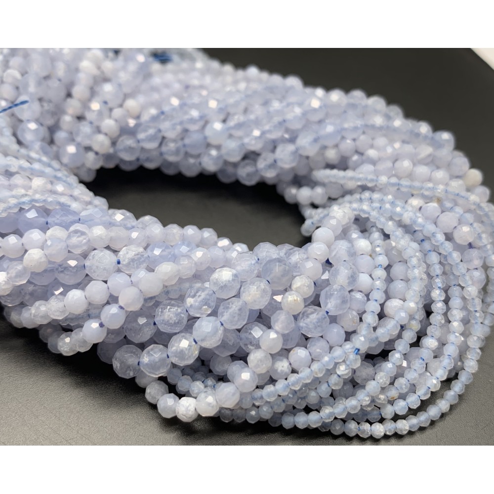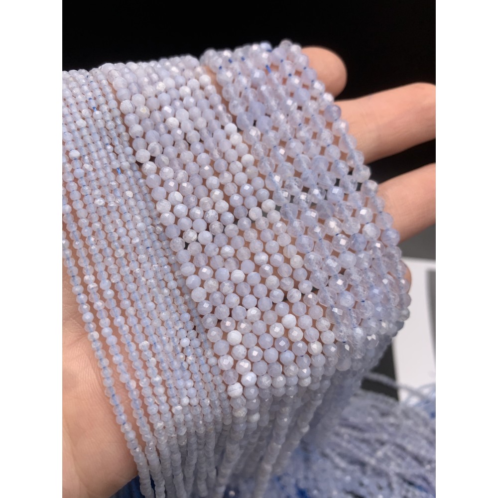 Каменные бусины, Сапфирин, Голубой Агат, шарик огранка, 3 мм, длина нити 38 см