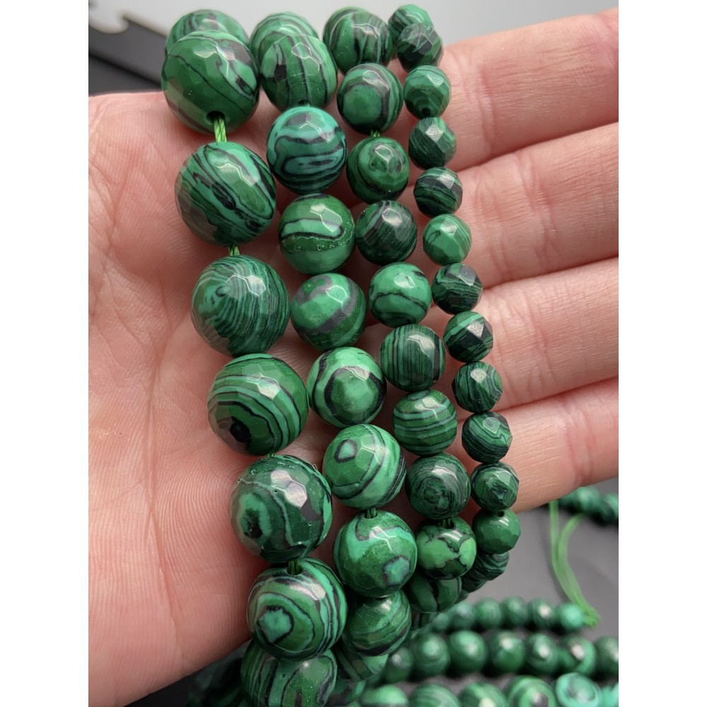 Технические характеристики Каменные бусины, Синтетический Малахит, имитация, шарик огранка 10 мм, длина нити 38 см