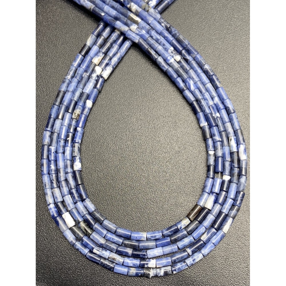 Каменные бусины, Содалит, трубочки, 4х2 мм, длина нити 38 см