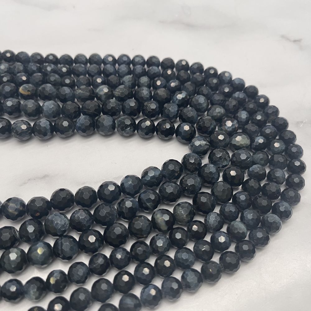 Каменные бусины, Соколиный глаз, синий, люкс, ювелирная огранка, шарик 8 мм, длина нити 19 см