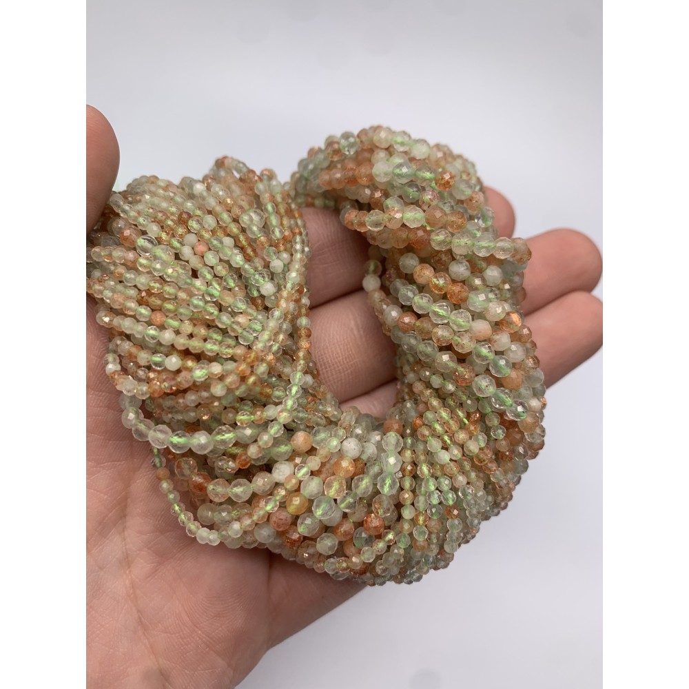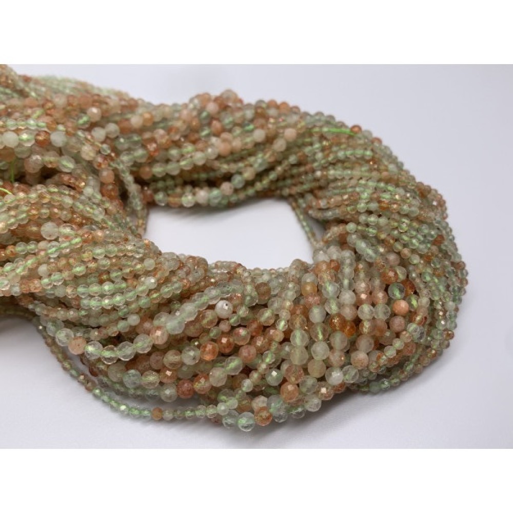Каменные бусины, Солнечный камень, Аруша, Танзания, шарик огранка, 2 мм, длина нити 38 см