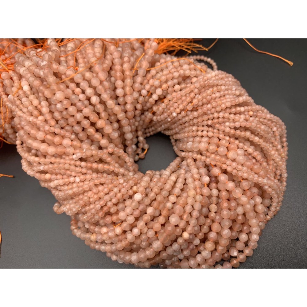 Каменные бусины, Солнечный камень (Олигоклаз), шарик огранка, 4 мм, длина нити 38 см