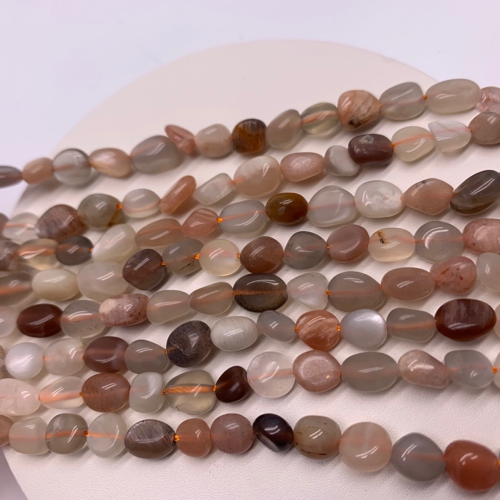 • Каменные бусины, Солнечный + Лунный камень, микс, фриформы, 8х5 мм, длина нити 38 см