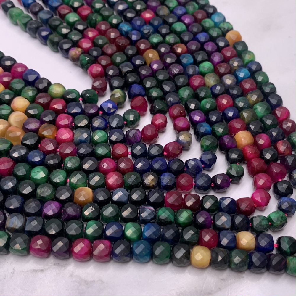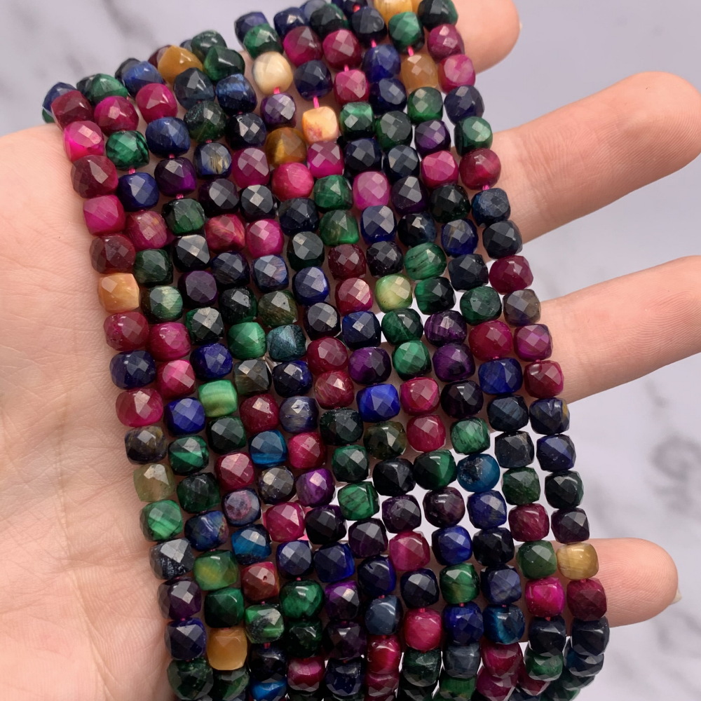 • Каменные бусины, Тигровый глаз, тонированный, кубик огранка, 5х5 мм, длина нити 38 см