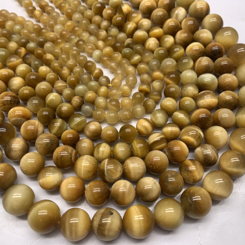 • Каменные бусины, Тигровый глаз, золотой, шарик гладкий, 10 мм, длина нити 38 см