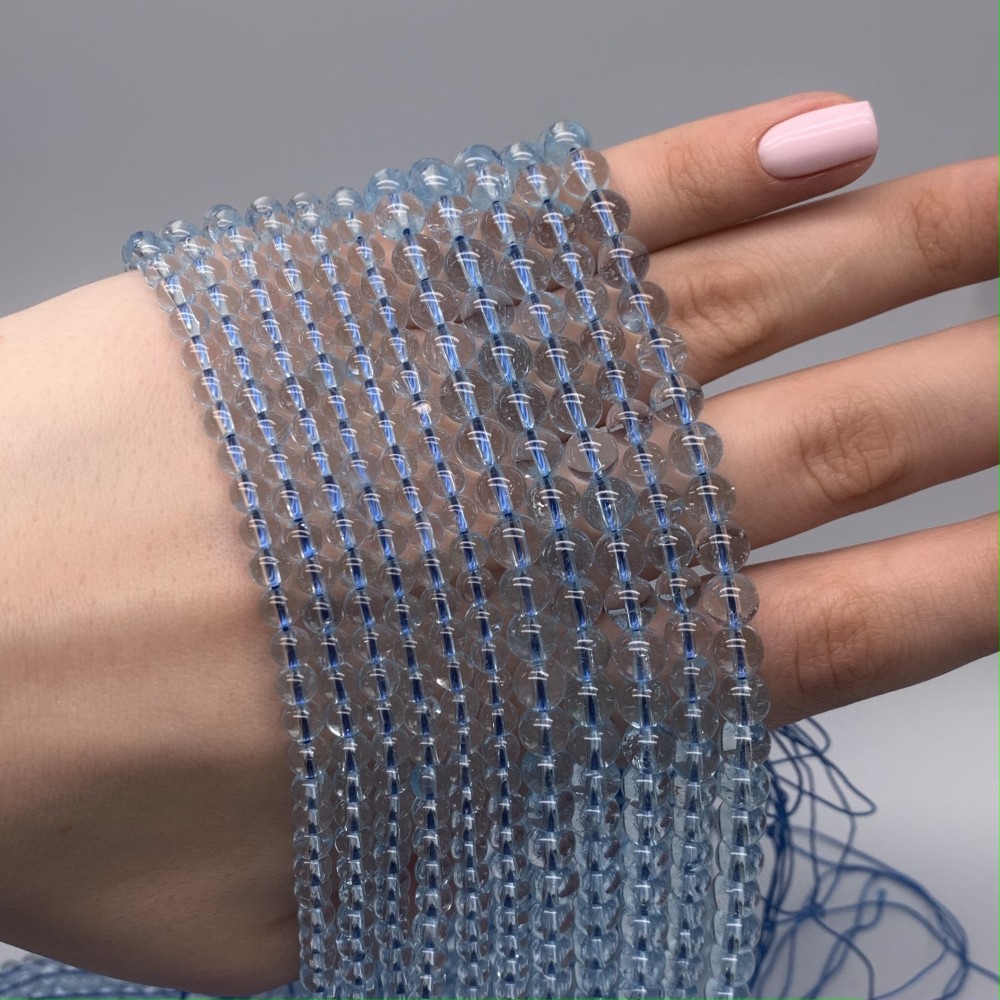 Каменные бусины, Топаз, голубой, люкс, шарик гладкий, 4 мм, длина нити 38 см