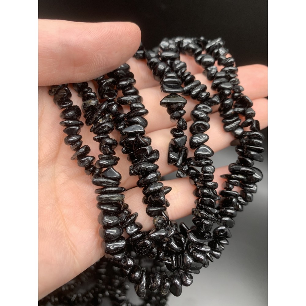 Каменные бусины, Турмалин, черный, фриформы, размер 7х4 мм, нить 78 см