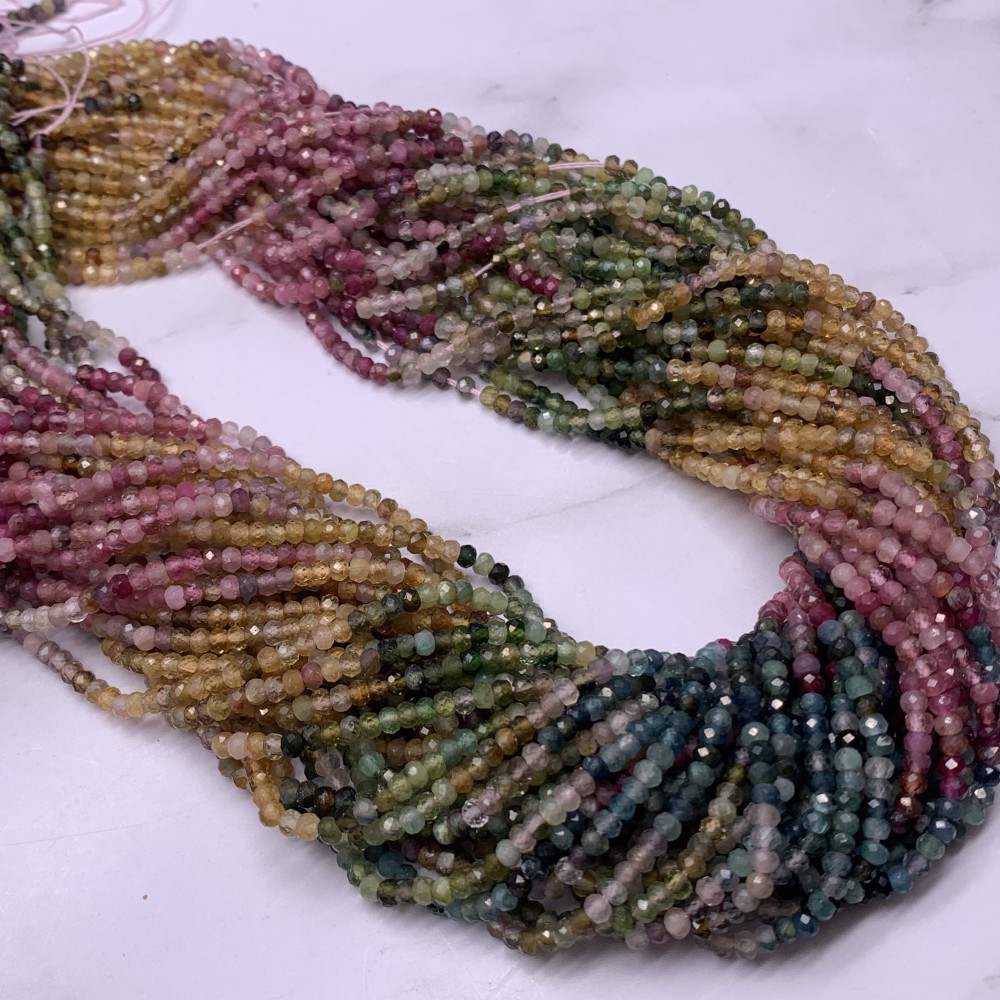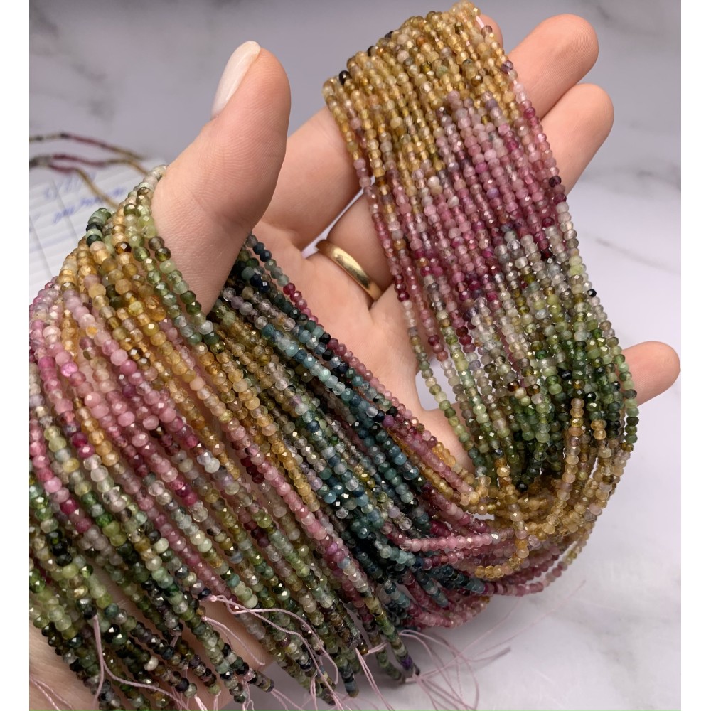 Каменные бусины, Турмалин, Люкс, рондель, огранка, 2х3 мм, длина нити 38 см