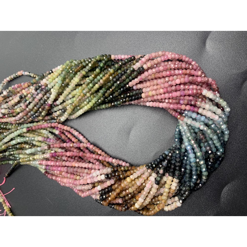 • Каменные бусины, Турмалин, люкс, рондель огранка, 3х2 мм, длина нити 38 см