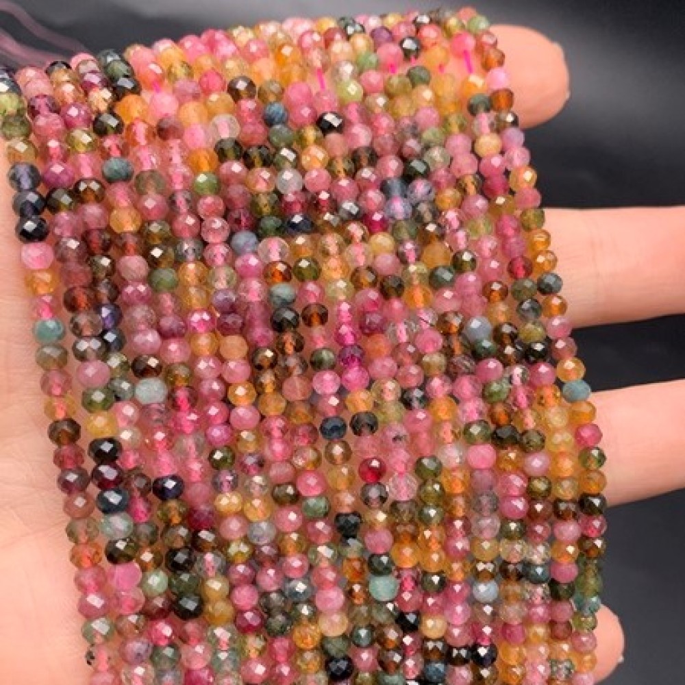• Каменные бусины, Турмалин, люкс, рондель огранка, 4х2,5 мм, длина нити 38 см
