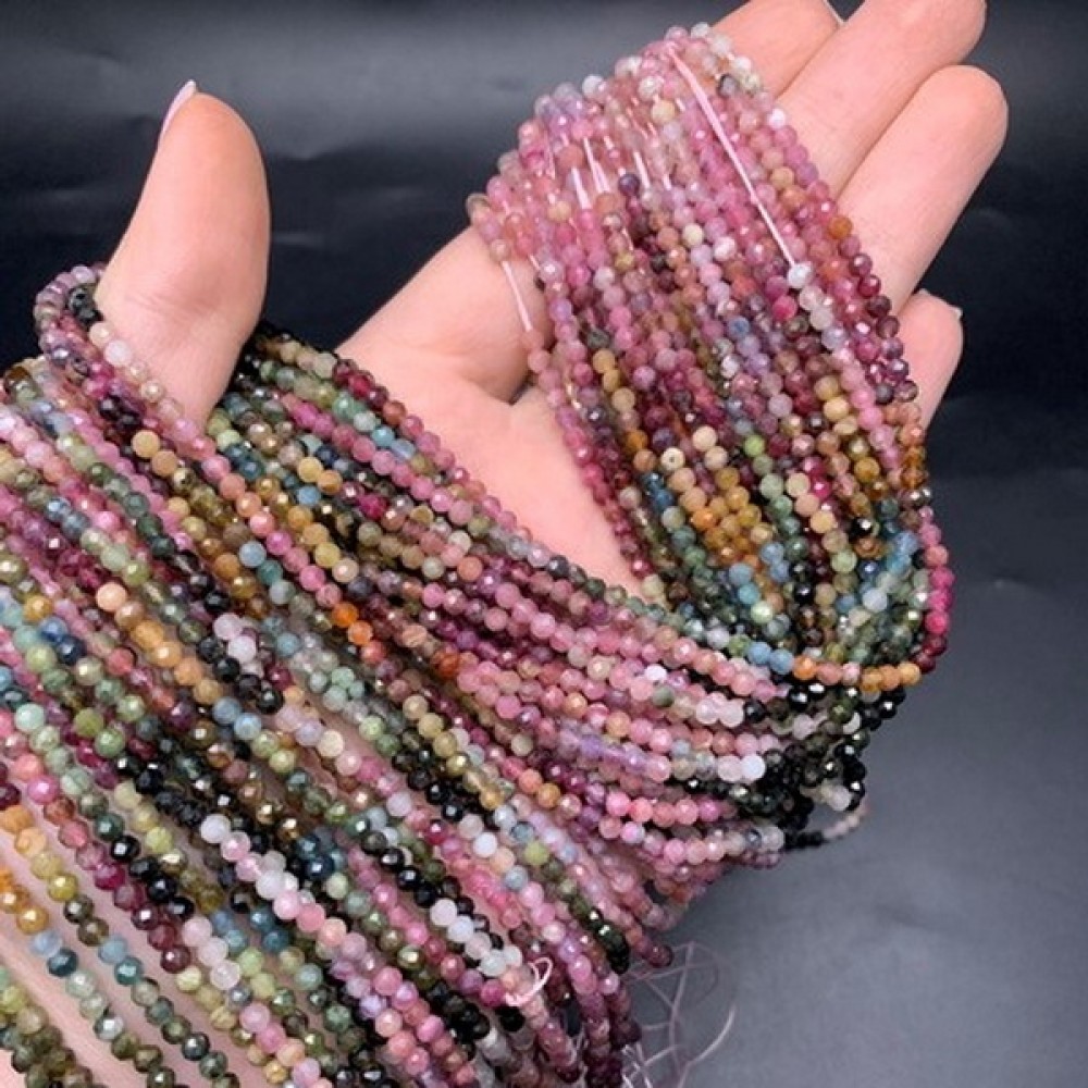 • Каменные бусины, Турмалин, люкс, шарик, огранка, 3 мм, длина нити 38 см
