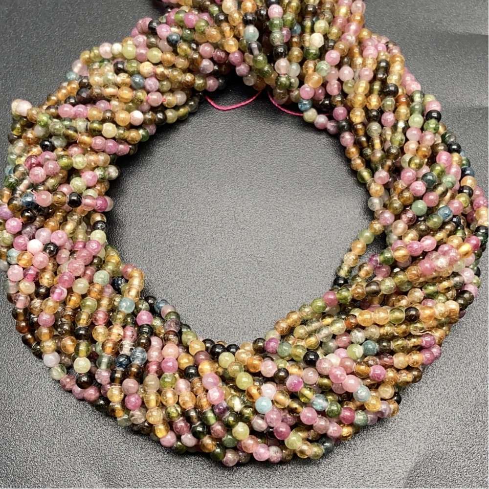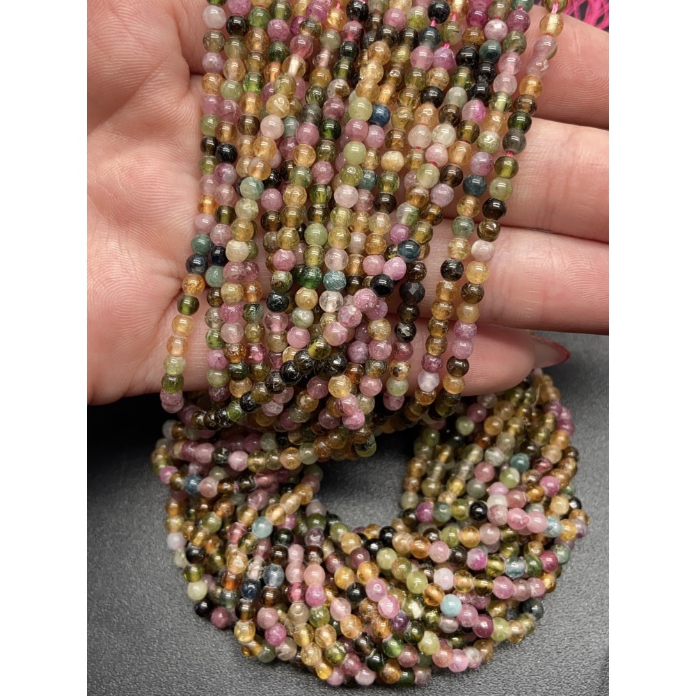 Каменные бусины, Турмалин, шарик гладкий, 3 мм, длина нити 38 см