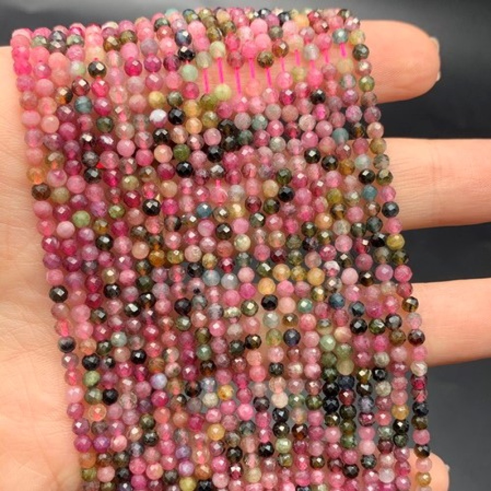 • Каменные бусины, Турмалин, шарик огранка, 3 мм, длина нити 38 см 14733