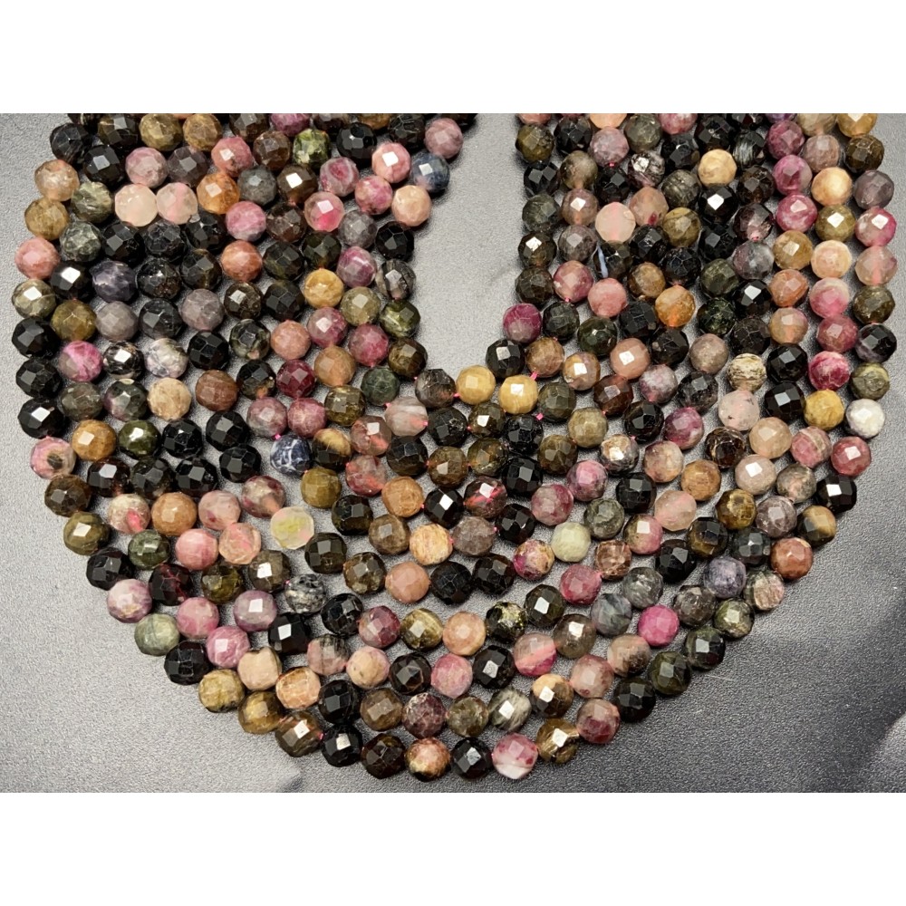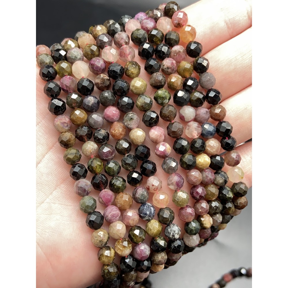 Каменные бусины, Турмалин, шарик огранка, 5 мм, длина нити 38 см
