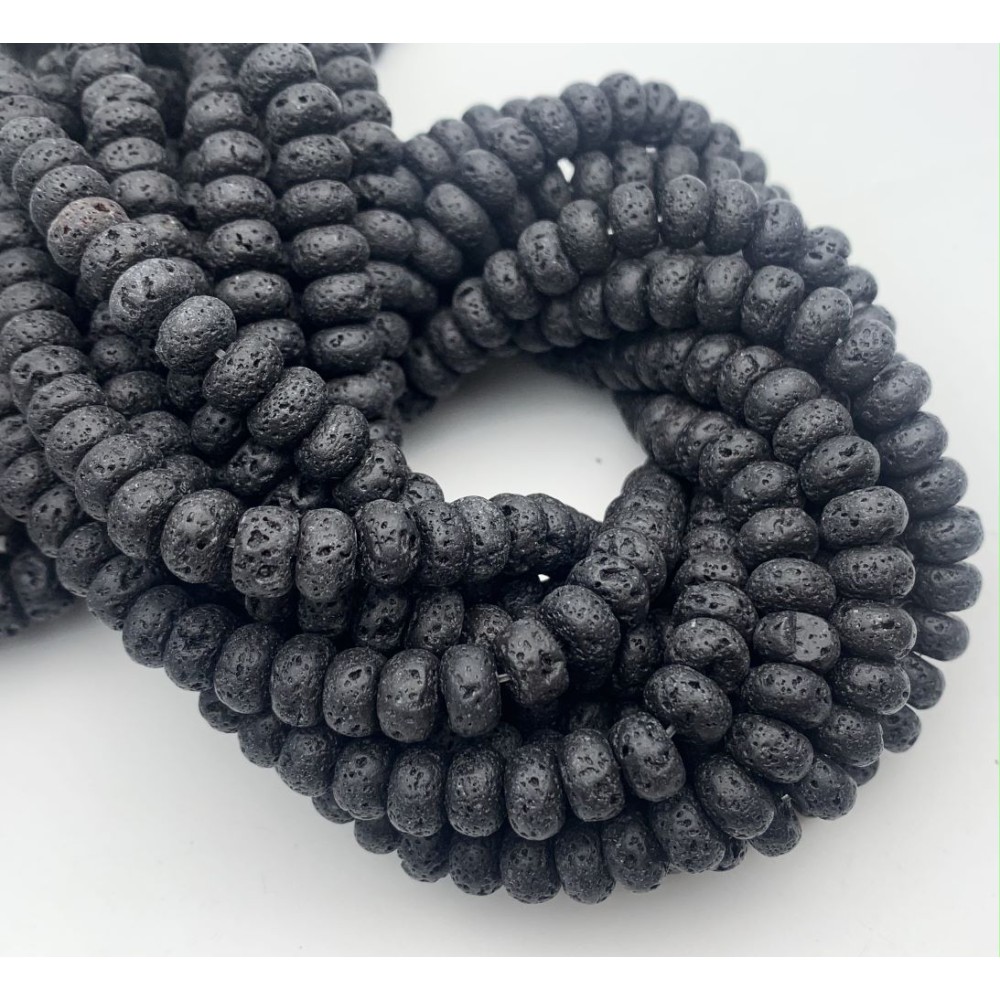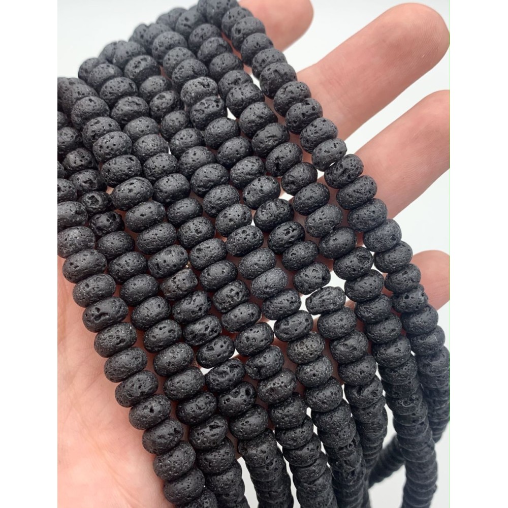 Каменные бусины, Вулканическая лава, черная, бублик, 6х10 мм, длина нити 38 см