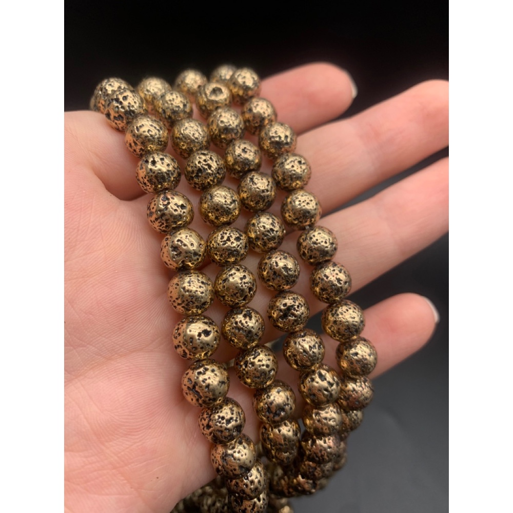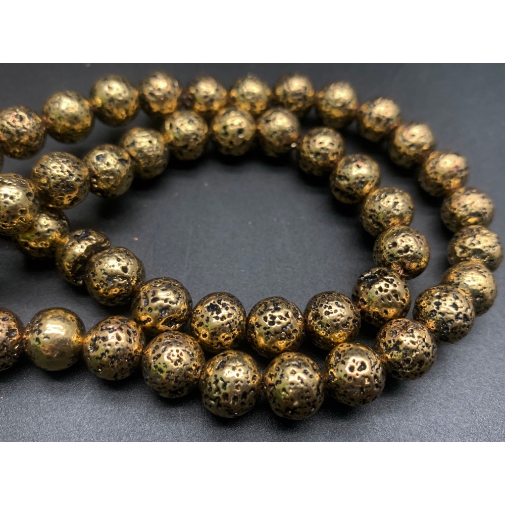 • Каменные бусины, Вулканическая лава металлизированная, цвет старое золото, 8 мм, длина нити 38 см