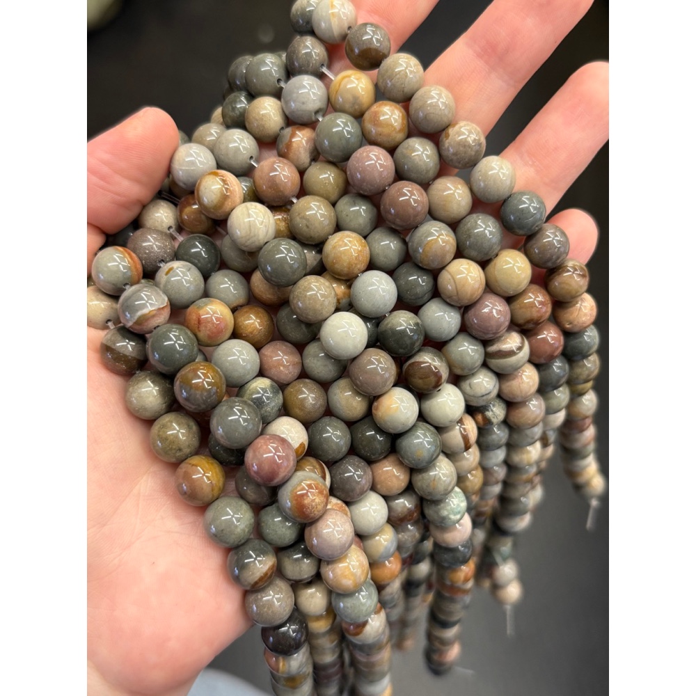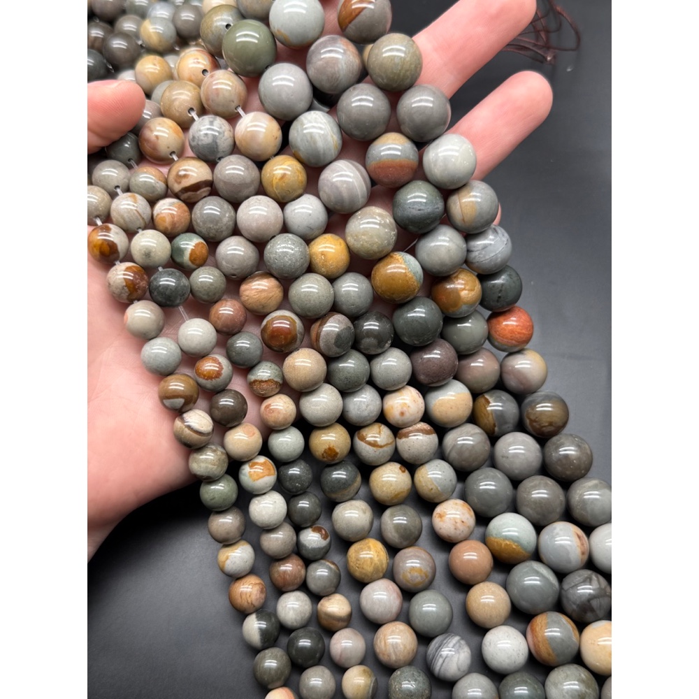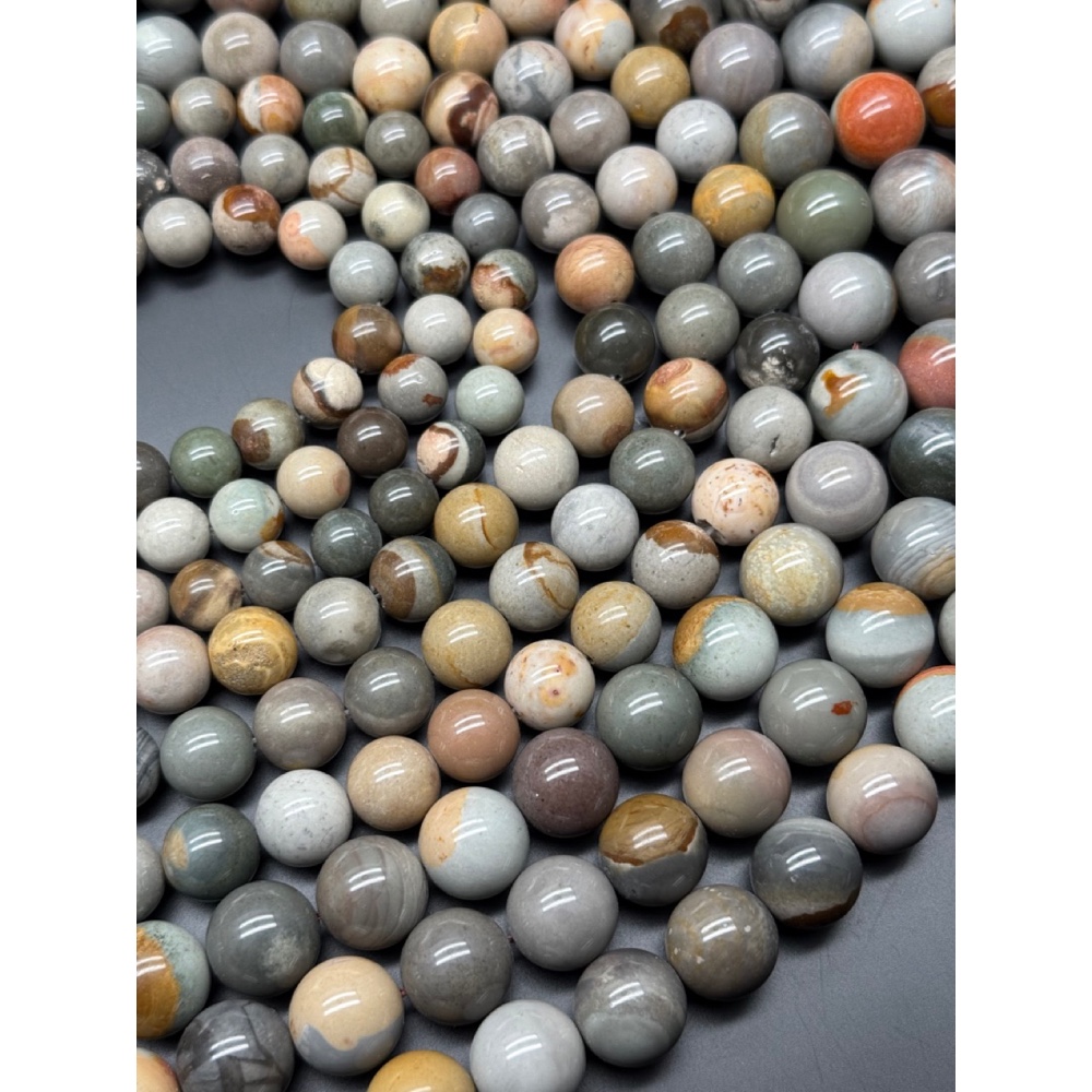 Каменные бусины, Яшма Пикассо, шарик гладкий, 14 мм, длина нити 39 см