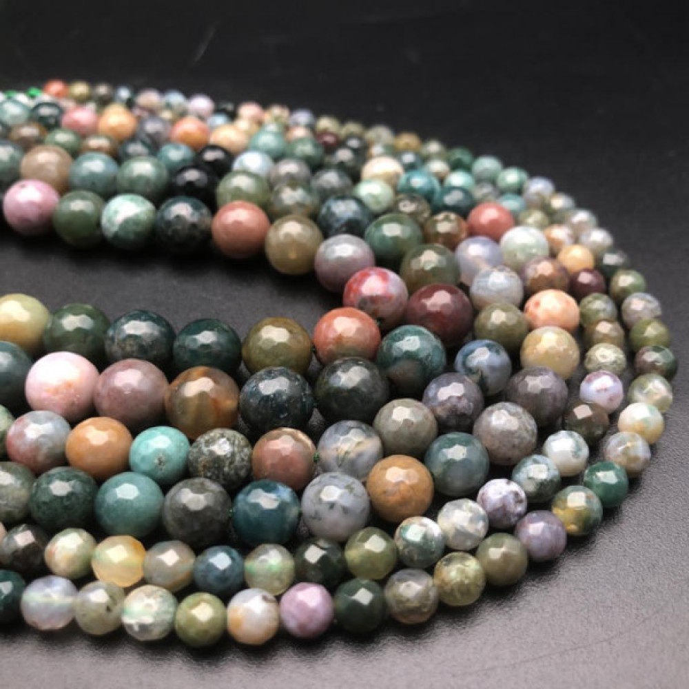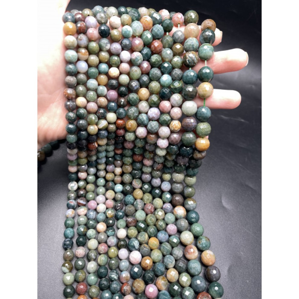 Теги: Каменные бусины, Яшма, зелёная, индийская, шарик, легкая огранка, 6 мм, длина нити 38 см, 14724, Бусины в огранке