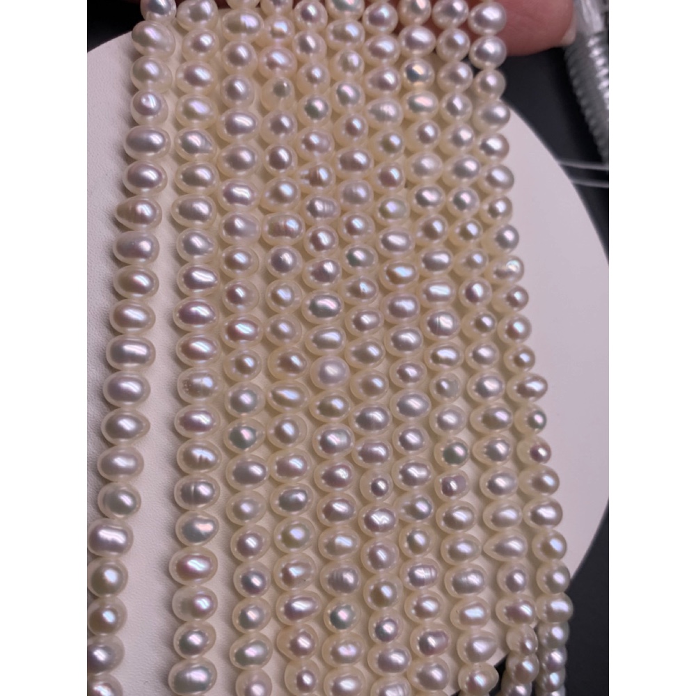 Каменные бусины, Жемчуг, белый, 4,5-5 мм, длина нити 39-40 см