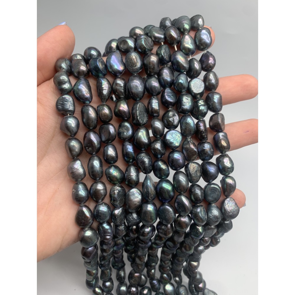• Каменные бусины, Жемчуг, чёрно-зелёный, фриформы, 10 - 11 мм, длина нити 38 см