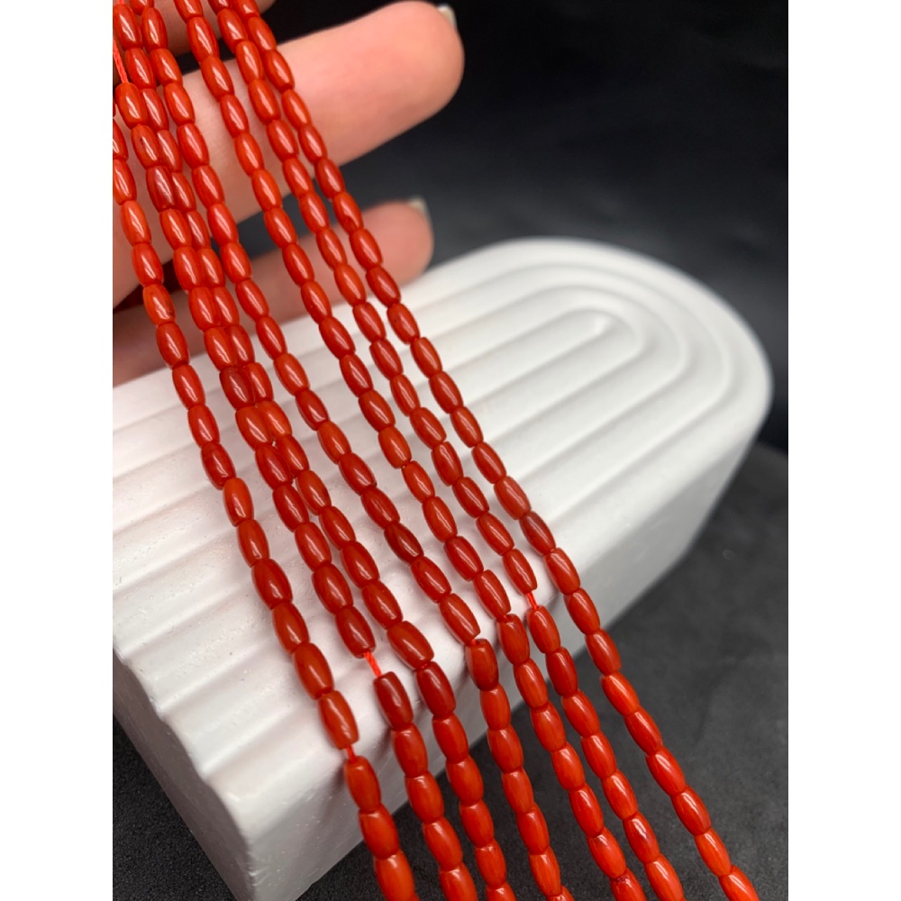 Каменные бусины, Коралл, красный, тонированный, бочонок, 3х5 мм, длина нити 38 см 0 400 ₽
