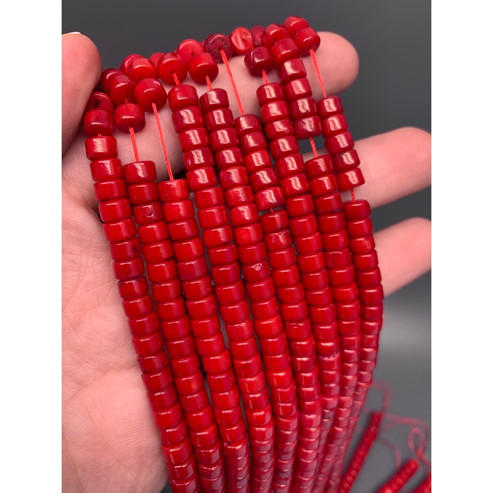 Каменные бусины, Коралл, красный, тонированный, бочонок, 4х6 мм, длина нити 38 см 0 1330 ₽