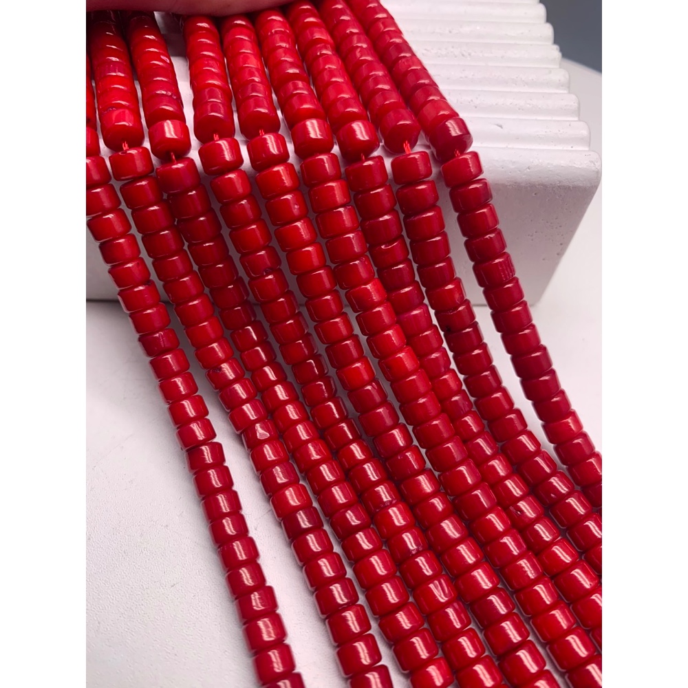 Каменные бусины, Коралл, красный, тонированный, бочонок, 4х6 мм, длина нити 38 см