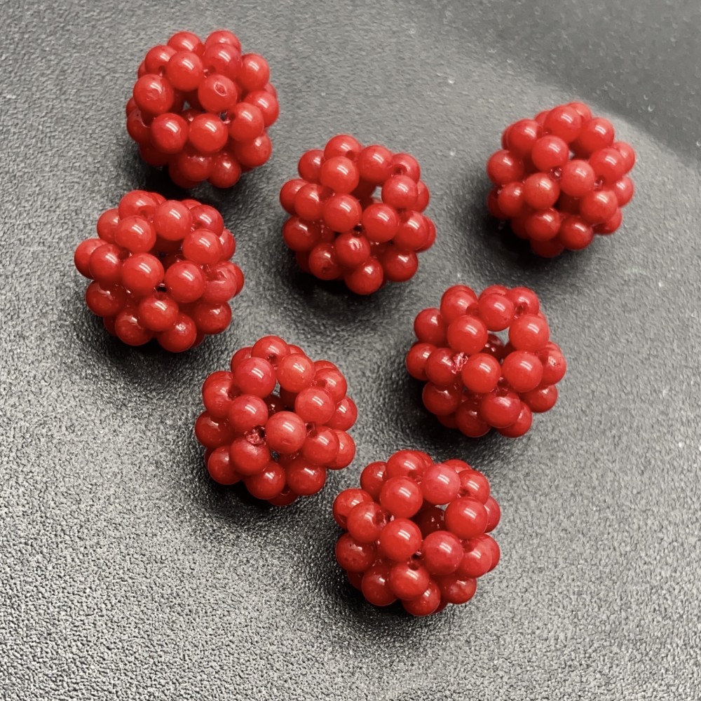 • Каменные бусины, Коралл, красный, тонированный, плетённая бусина из кораллов, 12 мм, цена за 1 шт