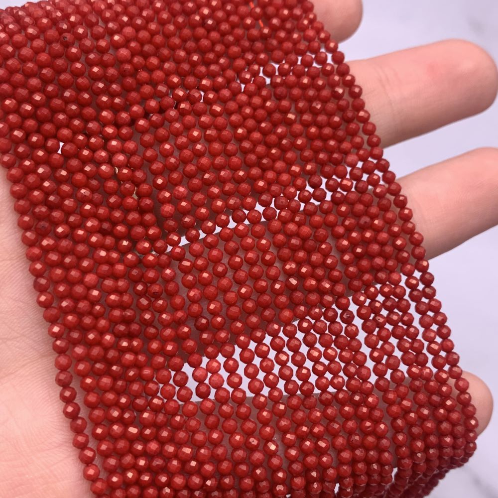 Каменные бусины, Коралл, красный, тонированный, шарик 2 мм, ювелирная огранка, нить 38 см