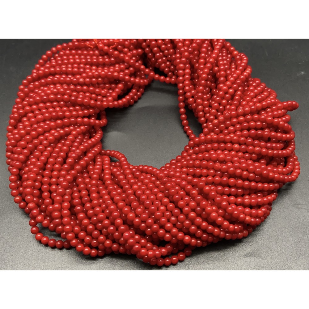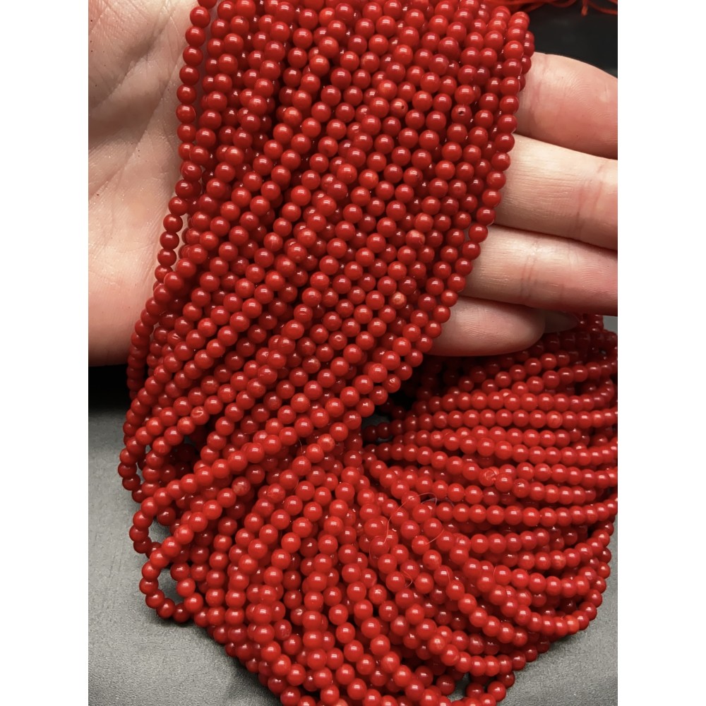 Каменные бусины, Коралл, красный, тонированный, шарик гладкий, 4 мм, длина нити 38 см